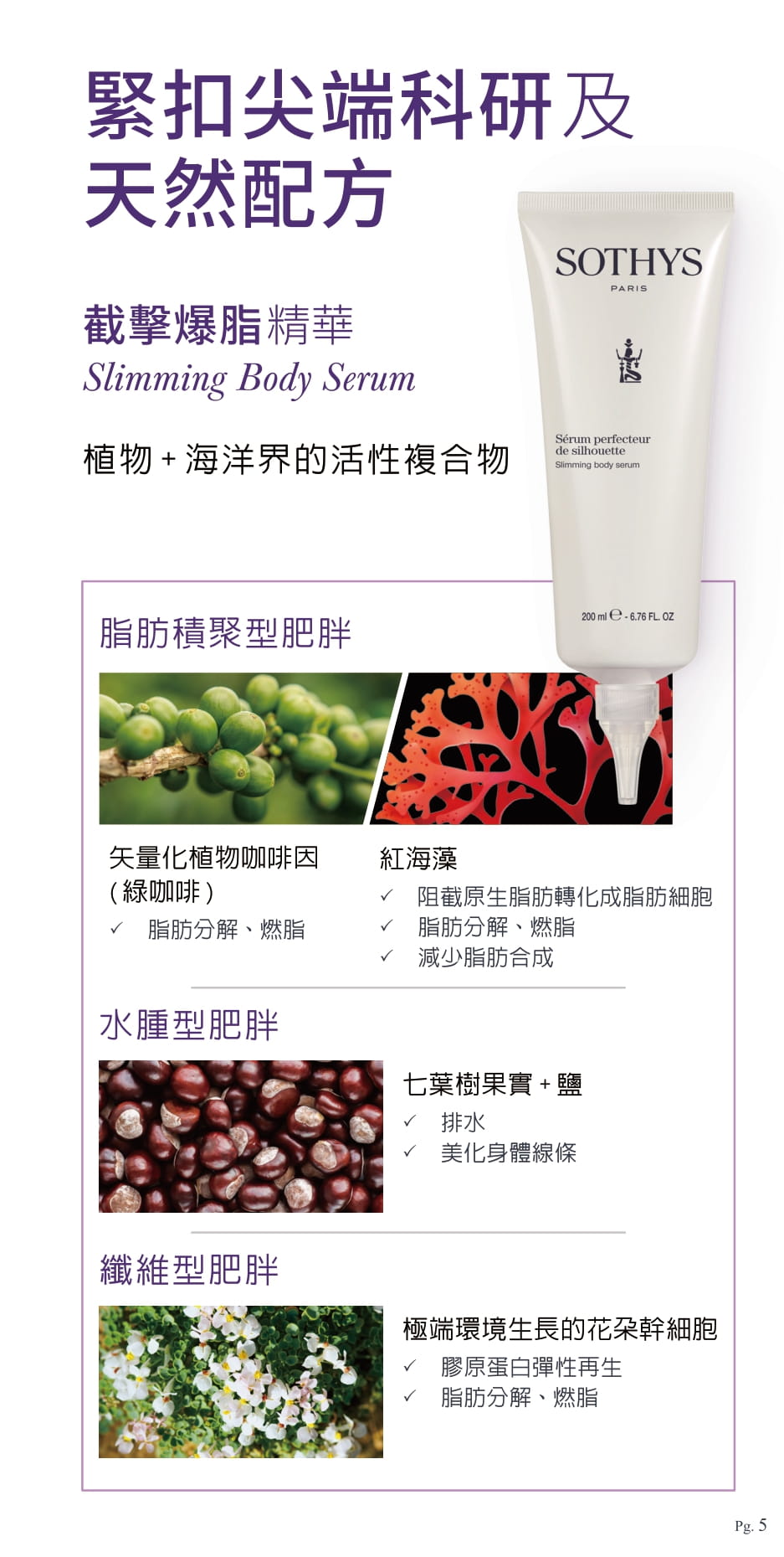 Slimming Body Serum 截擊爆脂精華- 燃燒脂肪- 阻止原生脂肪增生及形成- 嶄新「細胞節食」概念。Pro-youth body serum 抗紋緊膚膏- 塑形、彈性- 改善皮膚鬆弛、收緊- 減淡及預防妊娠紋。